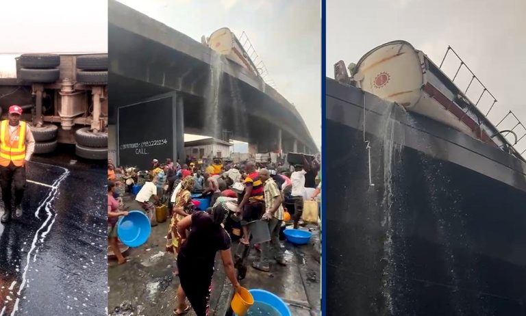 A video circulating on social media showed large crowds rushing to collect the spilled fuel despite traffic congestion and the danger of a possible fire outbreak. The incident caused chaos on the busy bridge, forcing authorities to take emergency control measures.