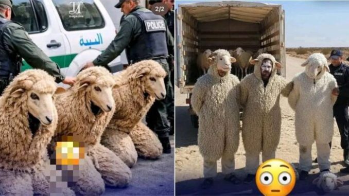 Alarmed by the suspicious movements, officers conducted a closer examination and discovered that three of the sheep were, in fact, men in disguise. They were immediately removed from the truck and taken into custody.